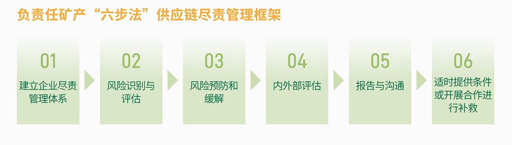 公司遵循《經(jīng)濟(jì)合作與發(fā)展組織受沖突影響和高風(fēng)險(xiǎn)區(qū)域礦石負(fù)責(zé)任的供應(yīng)鏈盡職調(diào)查指南(第三版)》《中國(guó)對(duì)外礦業(yè)投資行業(yè)社會(huì)責(zé)任指引》《中國(guó)礦產(chǎn)供應(yīng)鏈盡責(zé)管理指南(第二版))等文件,于內(nèi)部制定了《負(fù)責(zé)任礦產(chǎn)資源供應(yīng)鏈管理政策》等文件,并基于政策要求供應(yīng)商簽署《供應(yīng)商行為準(zhǔn)則》《不使用沖突礦產(chǎn)承諾書》邀請(qǐng)供應(yīng)商填寫礦物報(bào)告、KYS 等調(diào)查表,引導(dǎo)和規(guī)范上游鋰礦供應(yīng)商行為,完善鋰供應(yīng)鏈盡責(zé)管理,鼓勵(lì)其承擔(dān)更多的環(huán)境和社會(huì)責(zé)任。